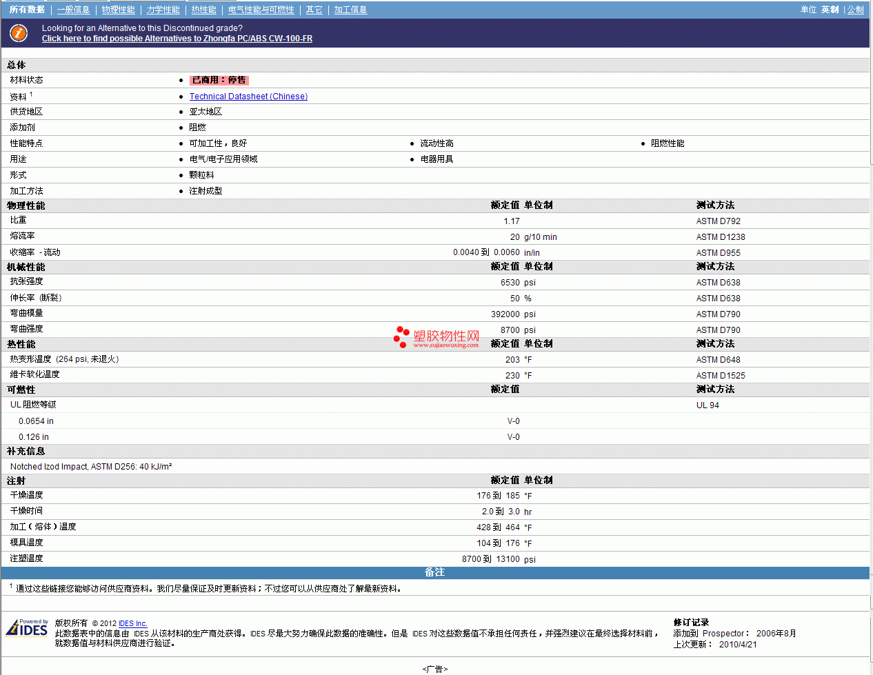 需要了解Zhongfa PC/ABS CW-100-FR 更多详情,赵先生:13424755533 或QQ:27660005