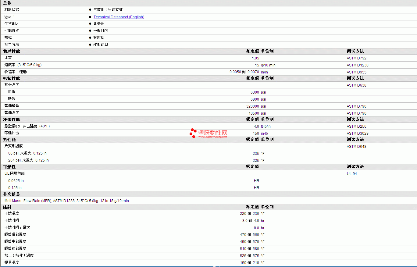 | 收缩率 - 流动 | 0.0050 到 0.0070 | in/in | ASTM D955 |