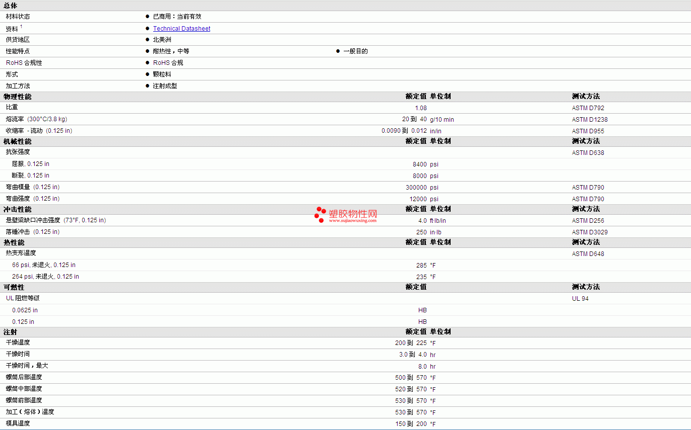 | 机械性能 | 额定值 | 单位制 | 测试方法 |