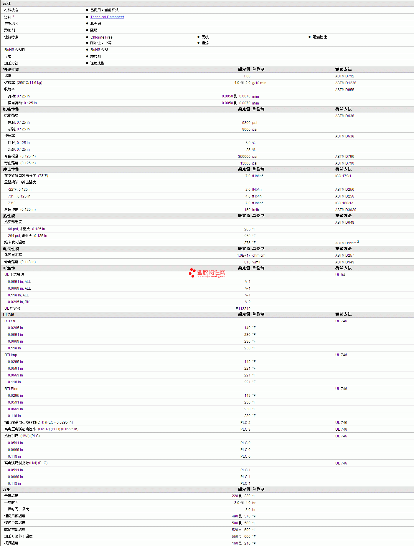 | 机械性能 | 额定值 | 单位制 | 测试方法 |