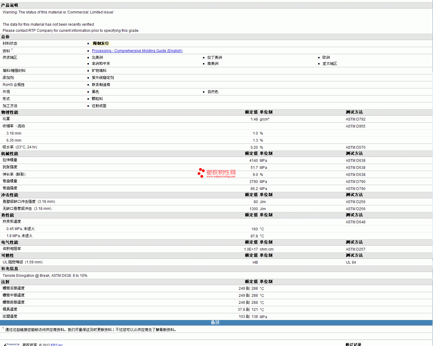 RTP Compounds PBT 1099 X 66617物性表 见图片