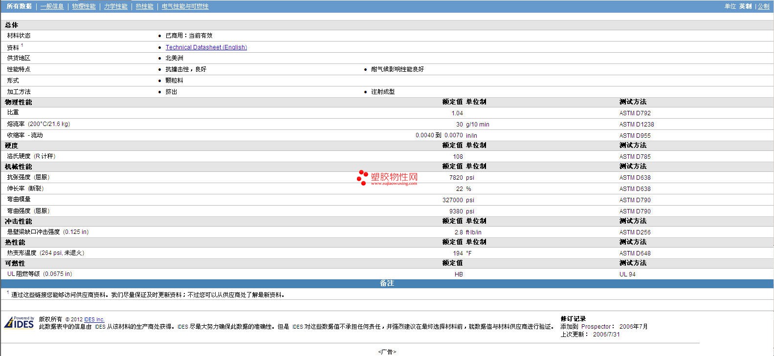 更多Southland AES ASE Resin 物性表报价,图片、材质证明、UL黄卡、物质安全资料表(MSDS)等,最新行情报价等可来电咨询赵先生:13424755533或QQ: 27660005