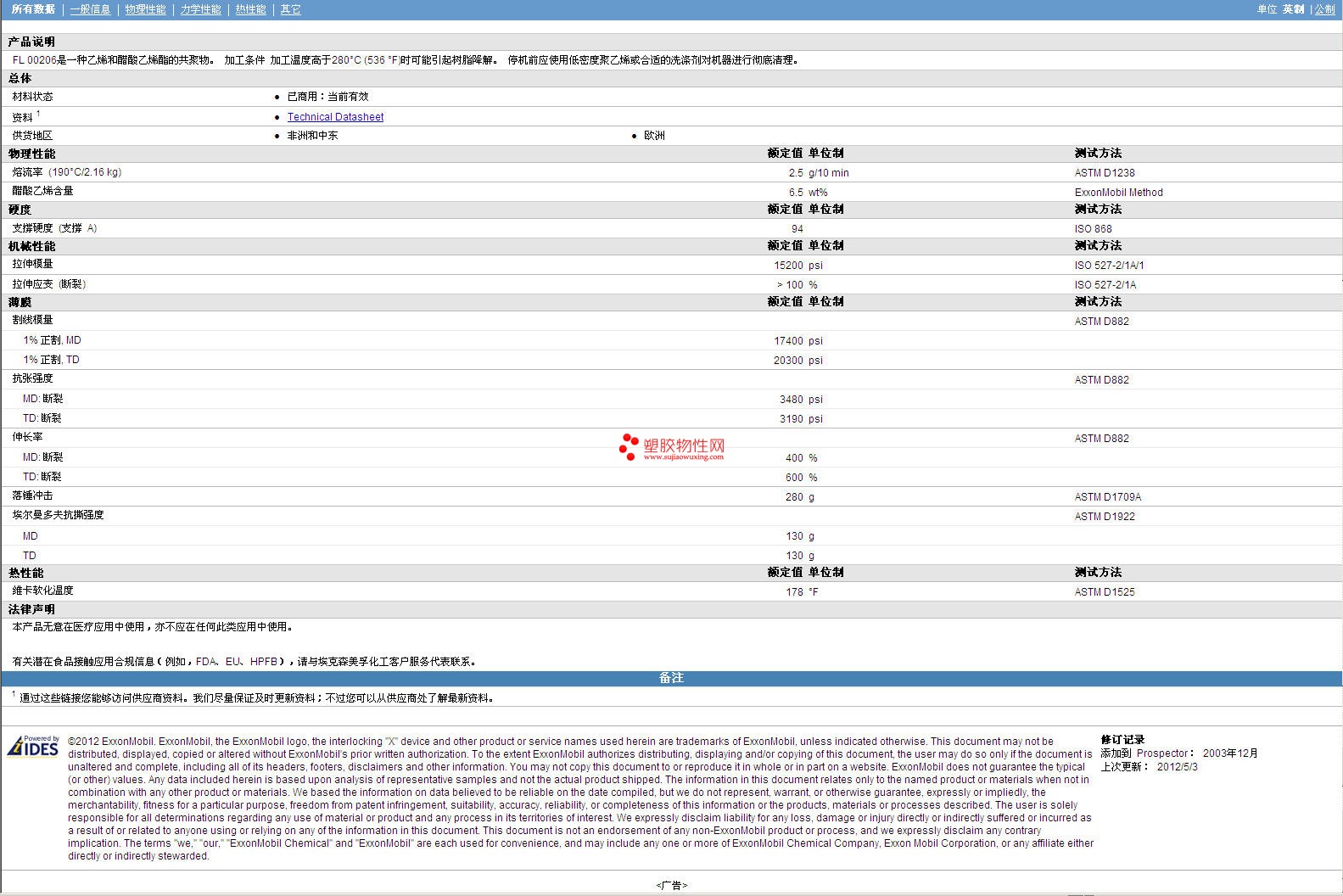 更多Escorene AES Ultra FL 00206 物性表报价,图片、材质证明、UL黄卡、物质安全资料表(MSDS)等,最新行情报价等可来电咨询赵先生:13424755533或QQ: 27660005