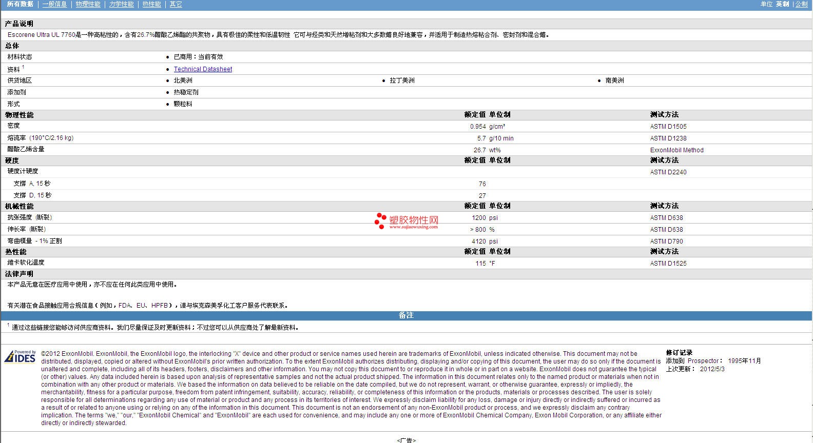 更多Escorene AES Ultra UL 7760 物性表图片,报价、物质安全资料表(MSDS)、材质证明、UL黄卡等,最新行情报价等可来电咨询赵先生:13424755533或QQ: 27660005