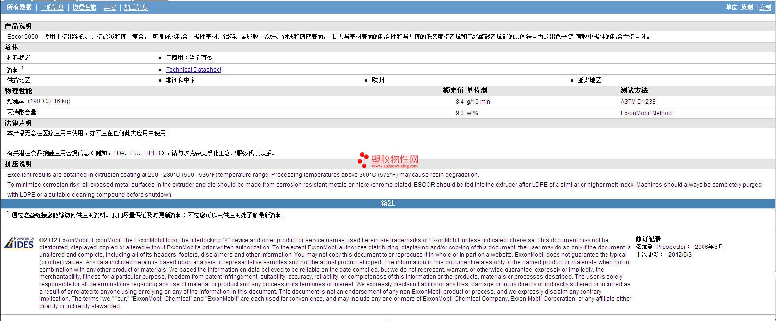 更多Escor AES 5050 ExCo 物性表图片,报价、物质安全资料表(MSDS)、材质证明、UL黄卡等,最新行情报价等可来电咨询赵先生:13424755533或QQ: 27660005