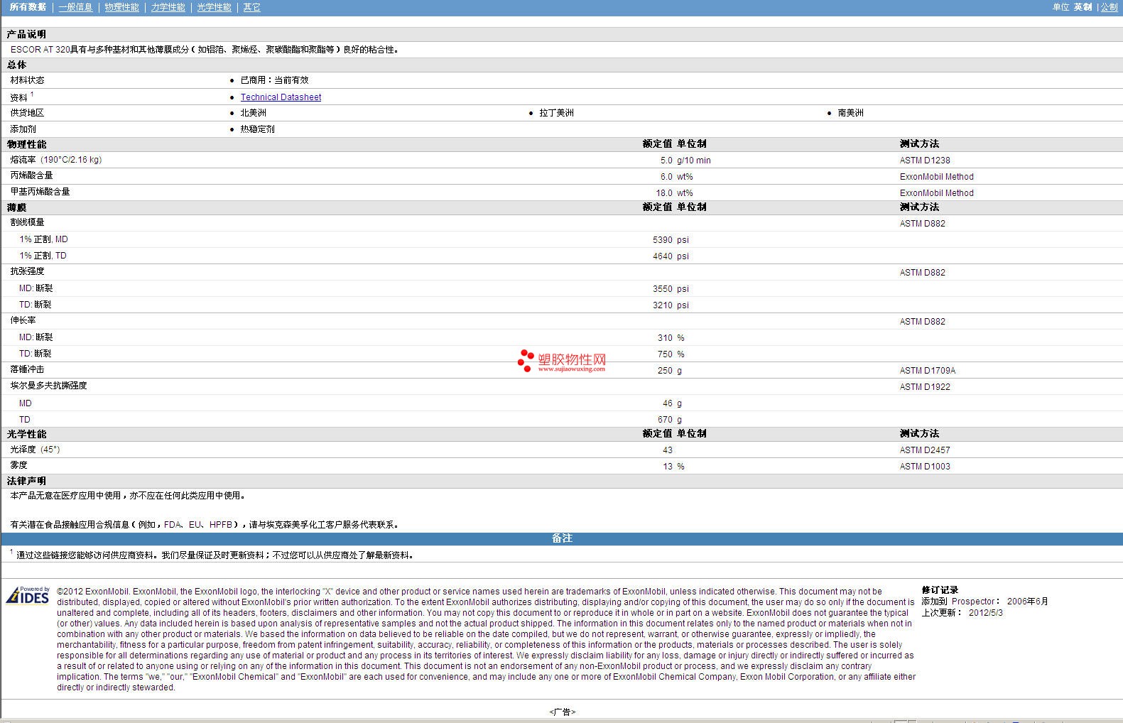 需了解Escor AES AT 320 Cast 物性表材质证明、ROHS(SGS)报告、物质安全资料表(MSDS)、UL黄卡等可来电咨询:赵先生:13424755533或QQ: 27660005