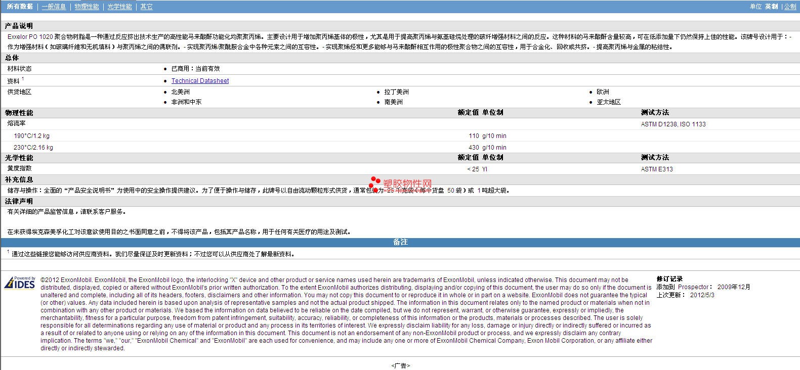 更多Exxelor AES PO 1020 物性表报价,图片、材质证明、UL黄卡、物质安全资料表(MSDS)等可来电咨询赵先生:13424755533或QQ: 27660005
