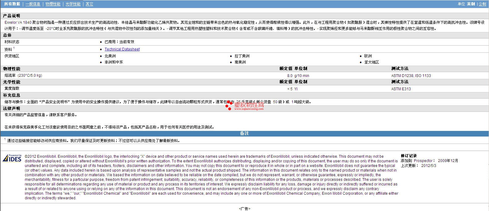 需了解Exxelor AES VA 1840 物性表更多详情,材质证明、ROHS(SGS)报告、物质安全资料表(MSDS)、UL黄卡等,最新行情报价等可来电咨询:赵先生:13424755533或QQ: 27660005