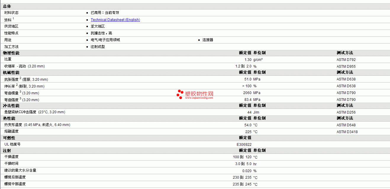 Sindustris PBT HV1006S物性表见图片