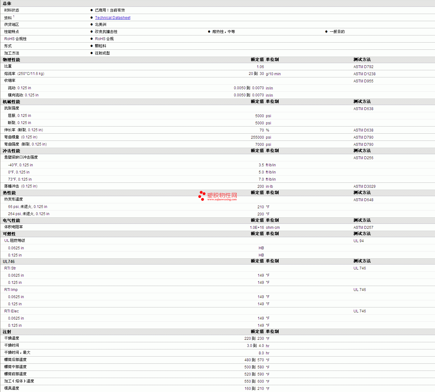 | 机械性能 | 额定值 | 单位制 | 测试方法 |