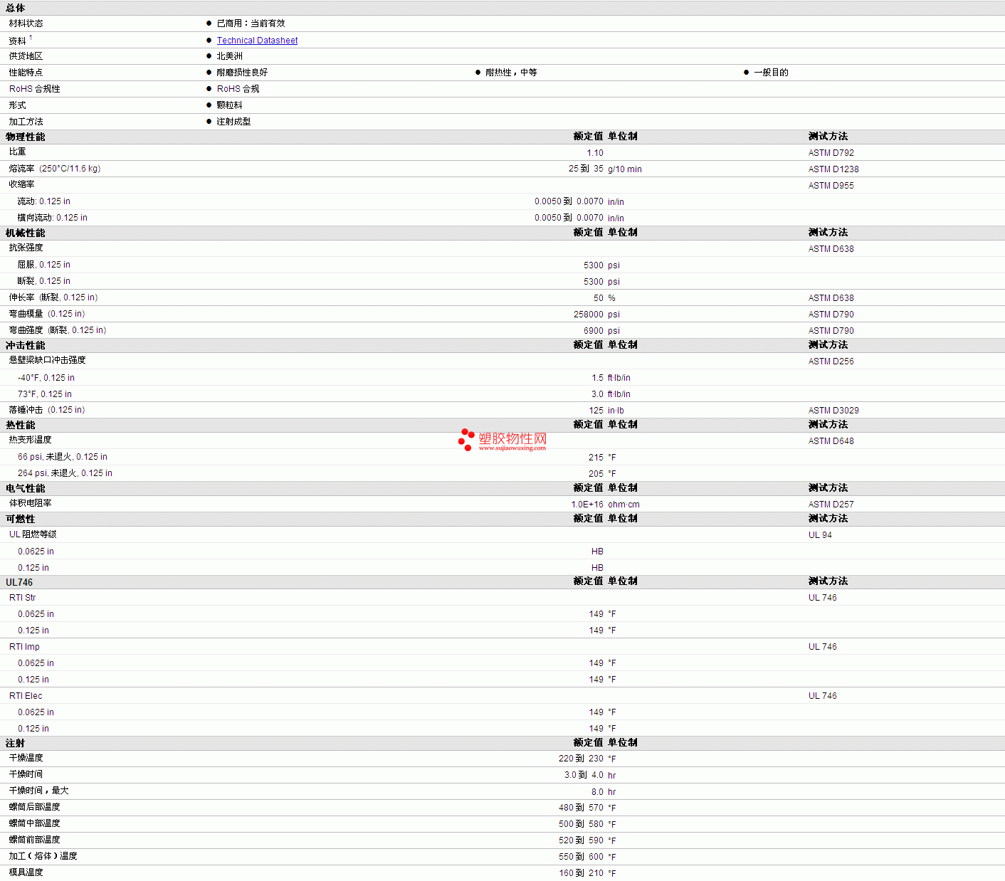 | 机械性能 | 额定值 | 单位制 | 测试方法 |