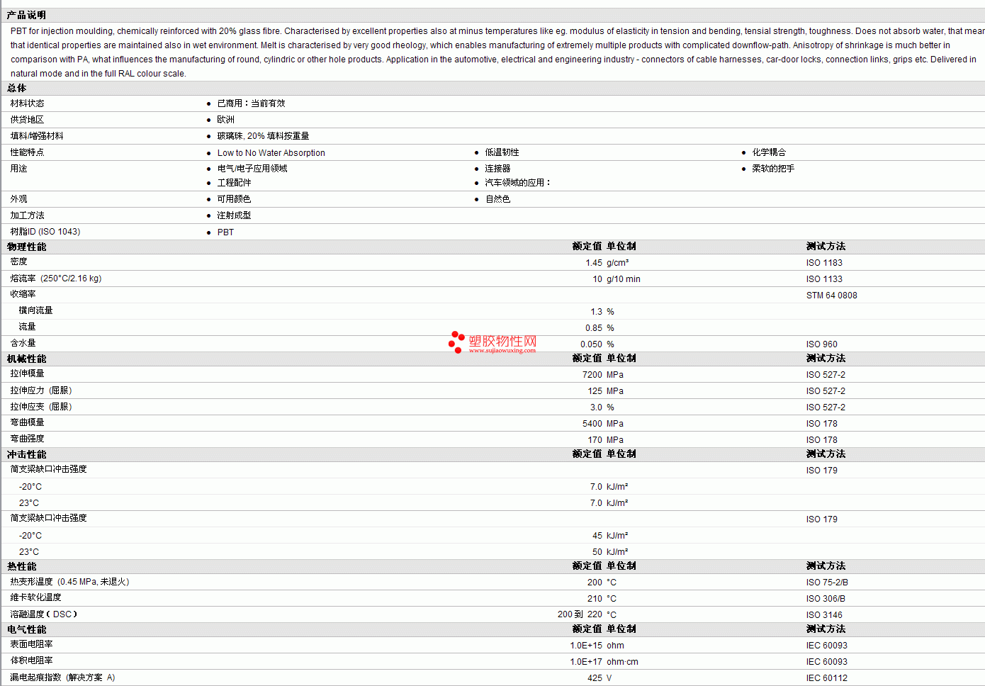 SLOVASTER pbt B GB 20 M物性表 见图片