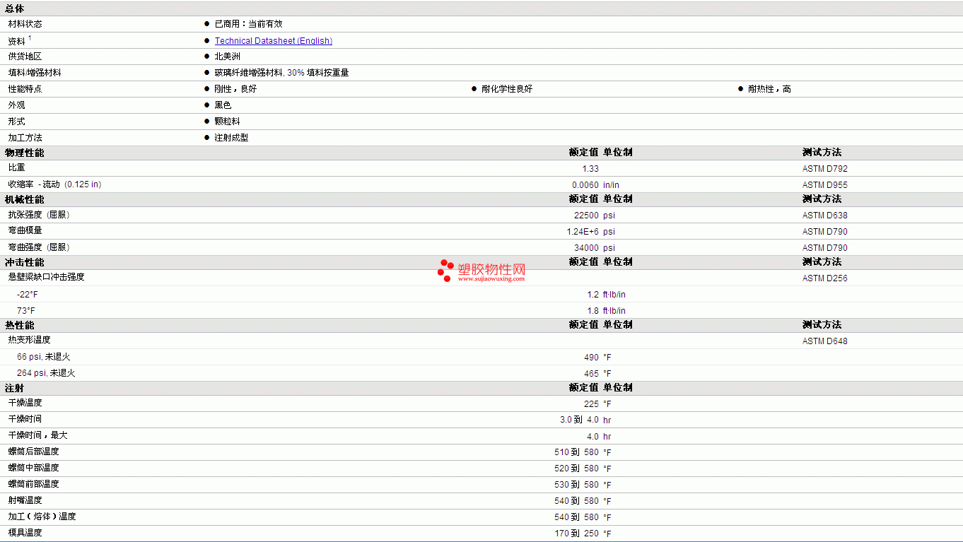 | 弯曲模量 | 1.24E+6 | psi | ASTM D790 |