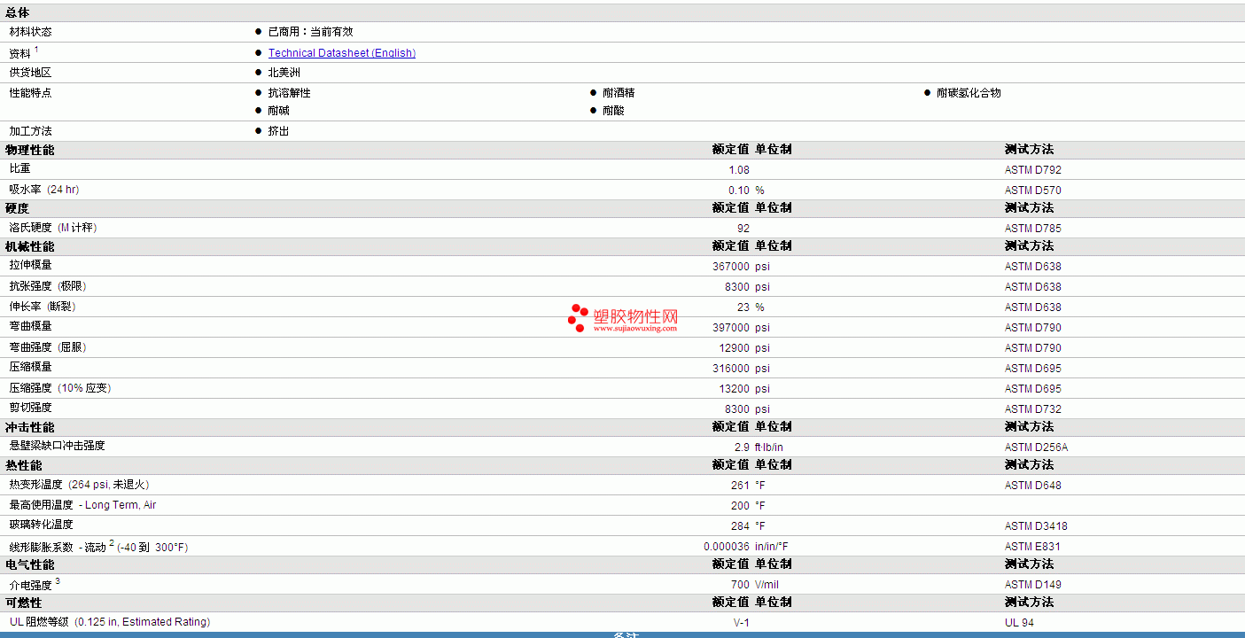 | 拉伸模量 | 367000 | psi | ASTM D638 |