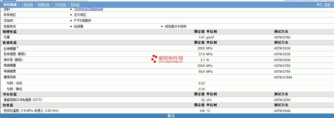 | 机械性能 | 额定值 | 单位制 | 测试方法 |