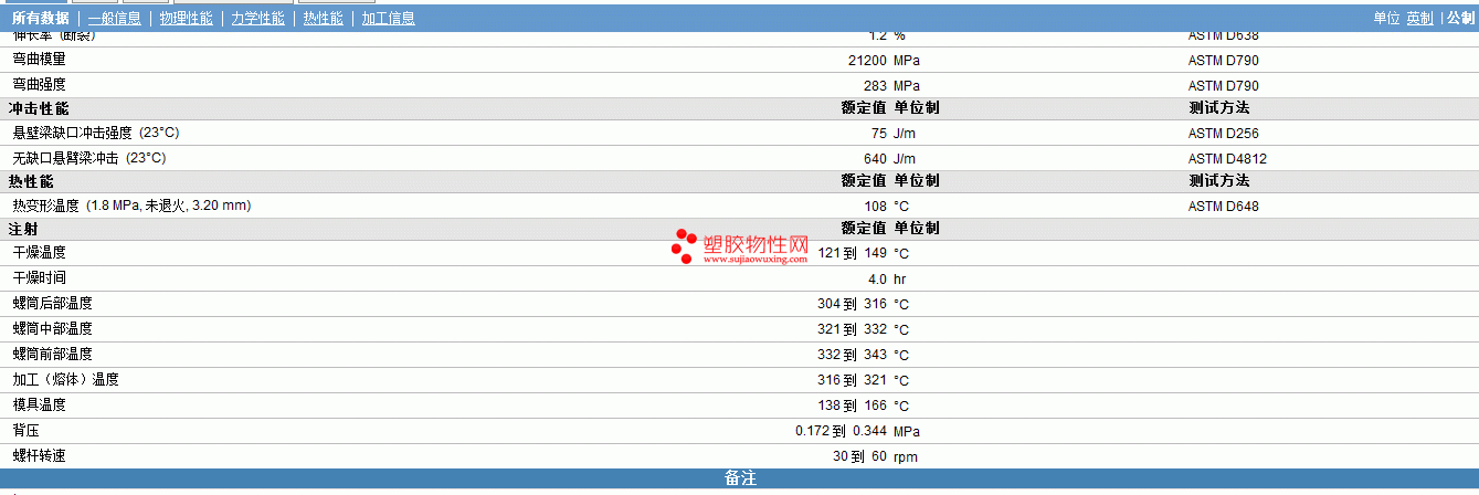 | 弯曲强度 | 283 | MPa | ASTM D790 |
