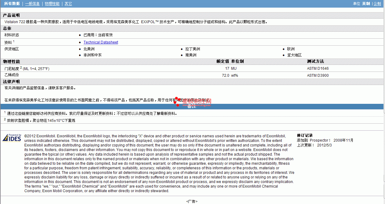 Vistalon AES 722更多资料见图