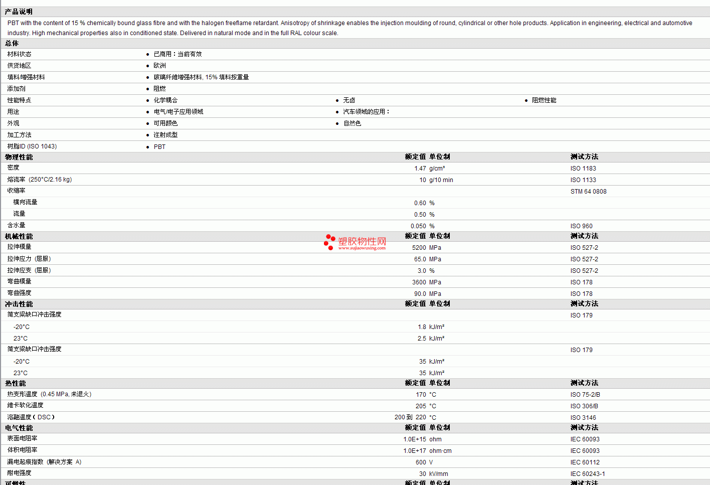 SLOVASTER pbt B1 GF 15 FRX 5物性表见图片