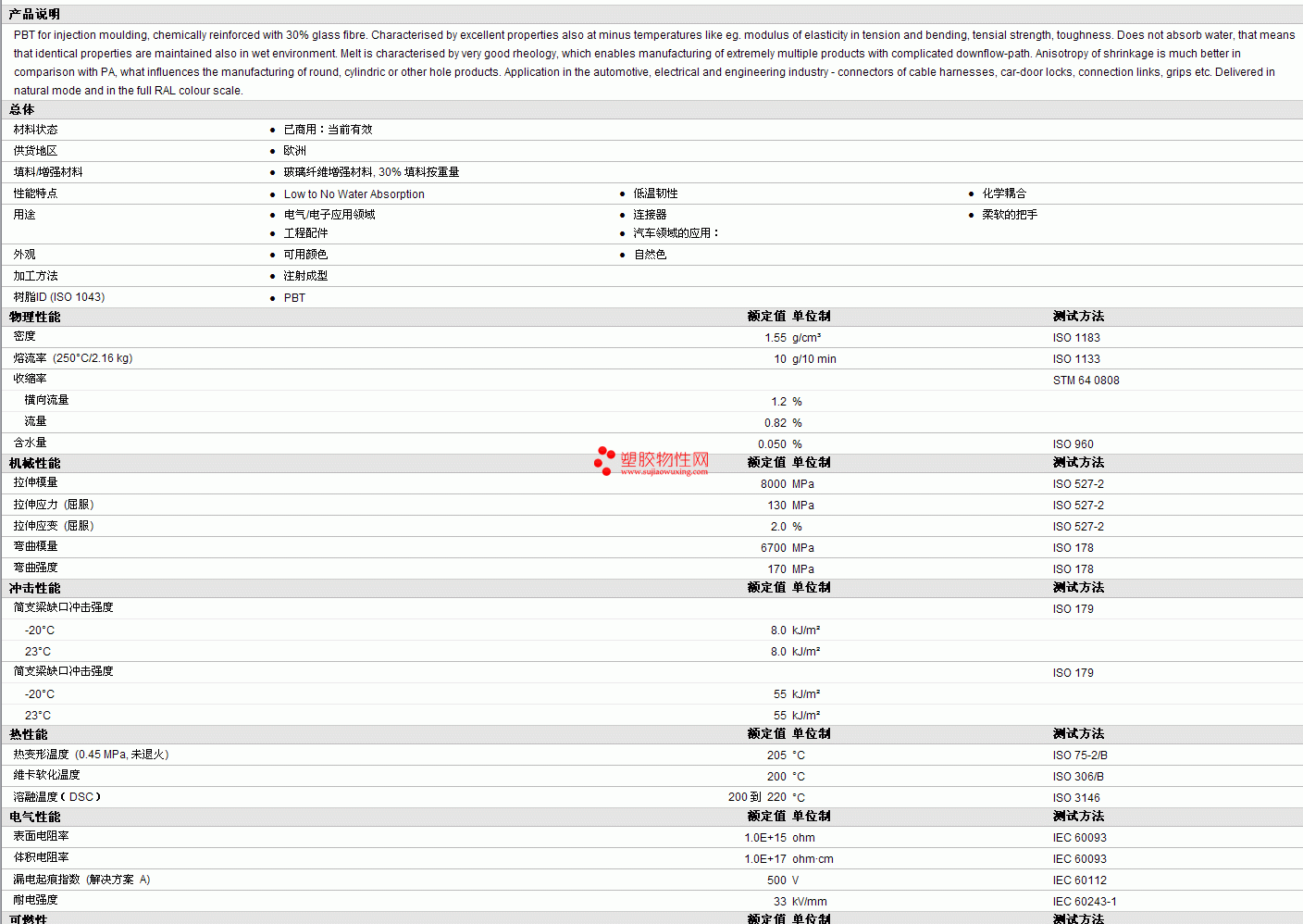 SLOVASTER pbt B1 GF 30物性表 见图片