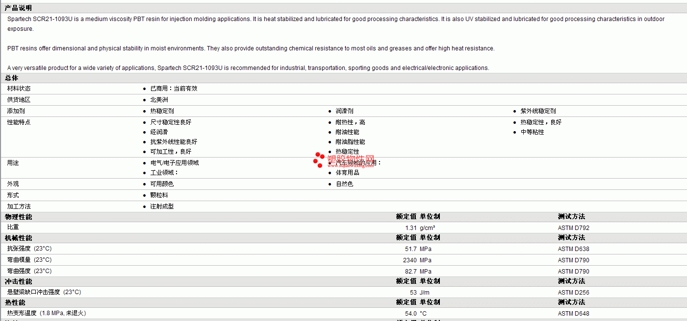 Spartech Polycom pbt SCR21-10 93U物性表 见图片