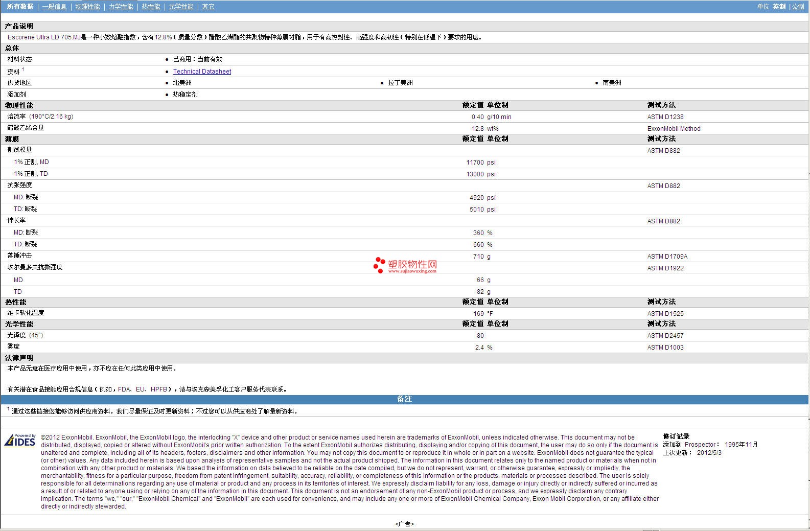 Escorene AES Ultra LD 705.MJ Blown 更多资料见图