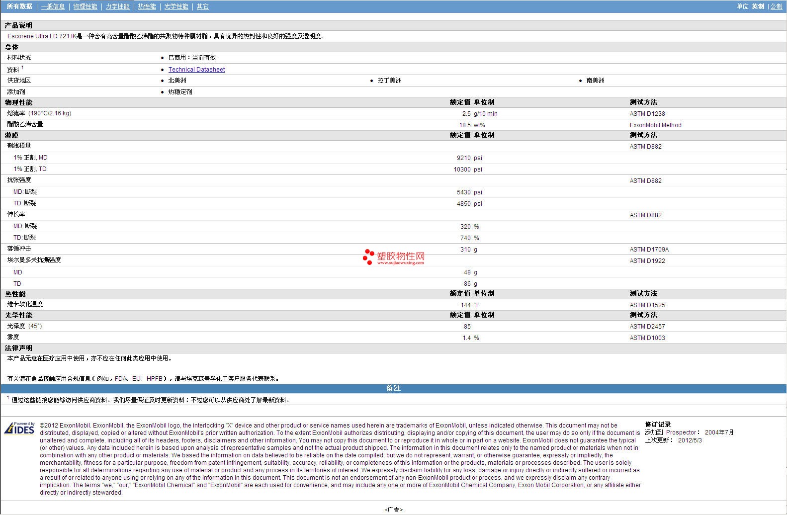 更多Escorene AES Ultra LD 721.IK 物性表报价,图片、材质证明、UL黄卡、物质安全资料表(MSDS)等,最新行情报价等可来电咨询赵先生:13424755533或QQ: 27660005