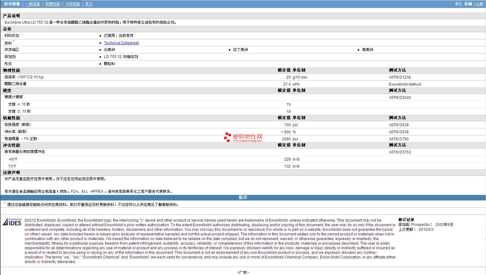 更多Escorene AES Ultra LD 755 Series 物性表图片,报价、物质安全资料表(MSDS)、材质证明、UL黄卡等,最新行情报价等可来电咨询赵先生:13424755533或QQ: 27660005