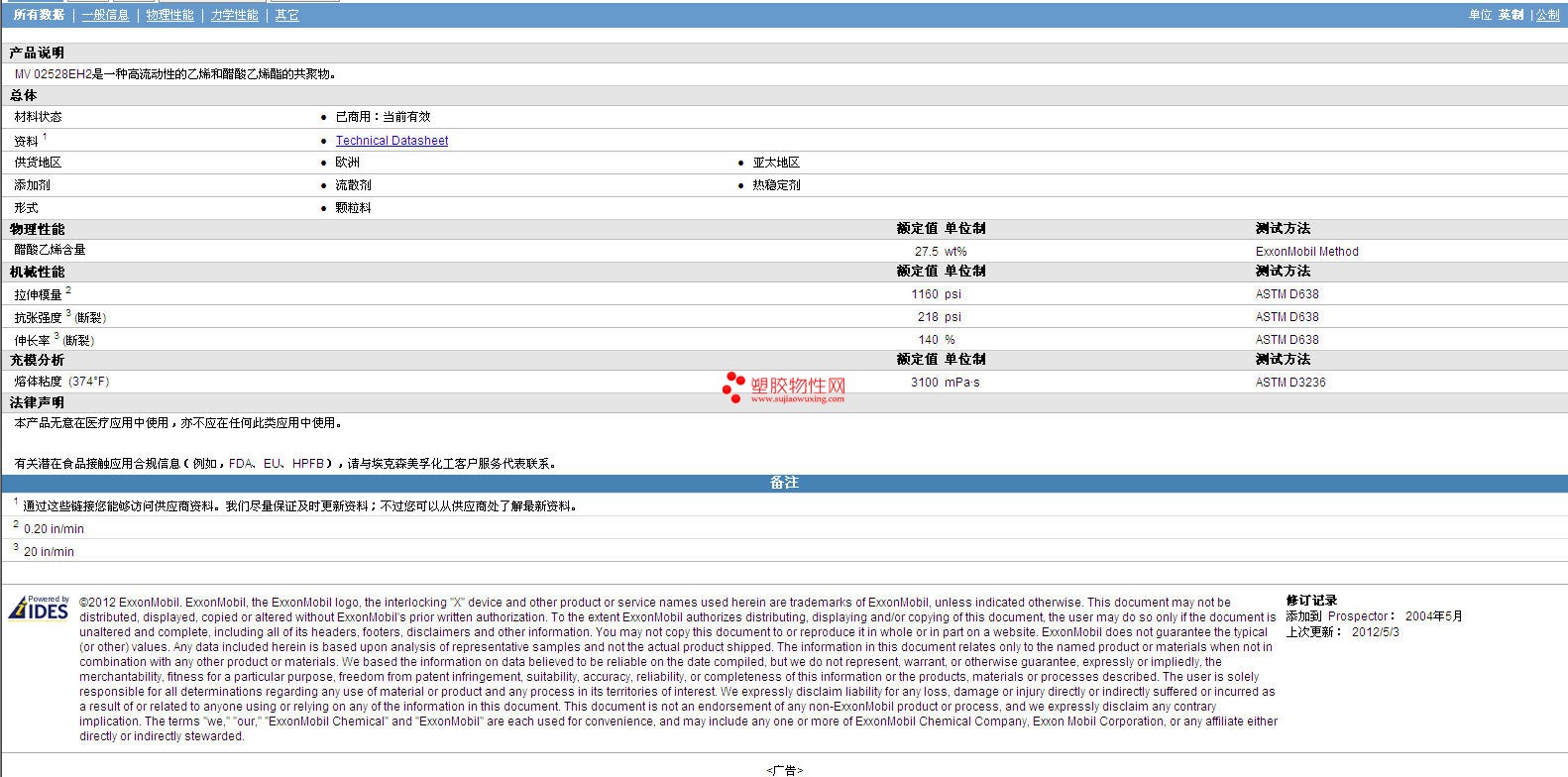 Escorene AES Ultra MV 02528EH2 物性表