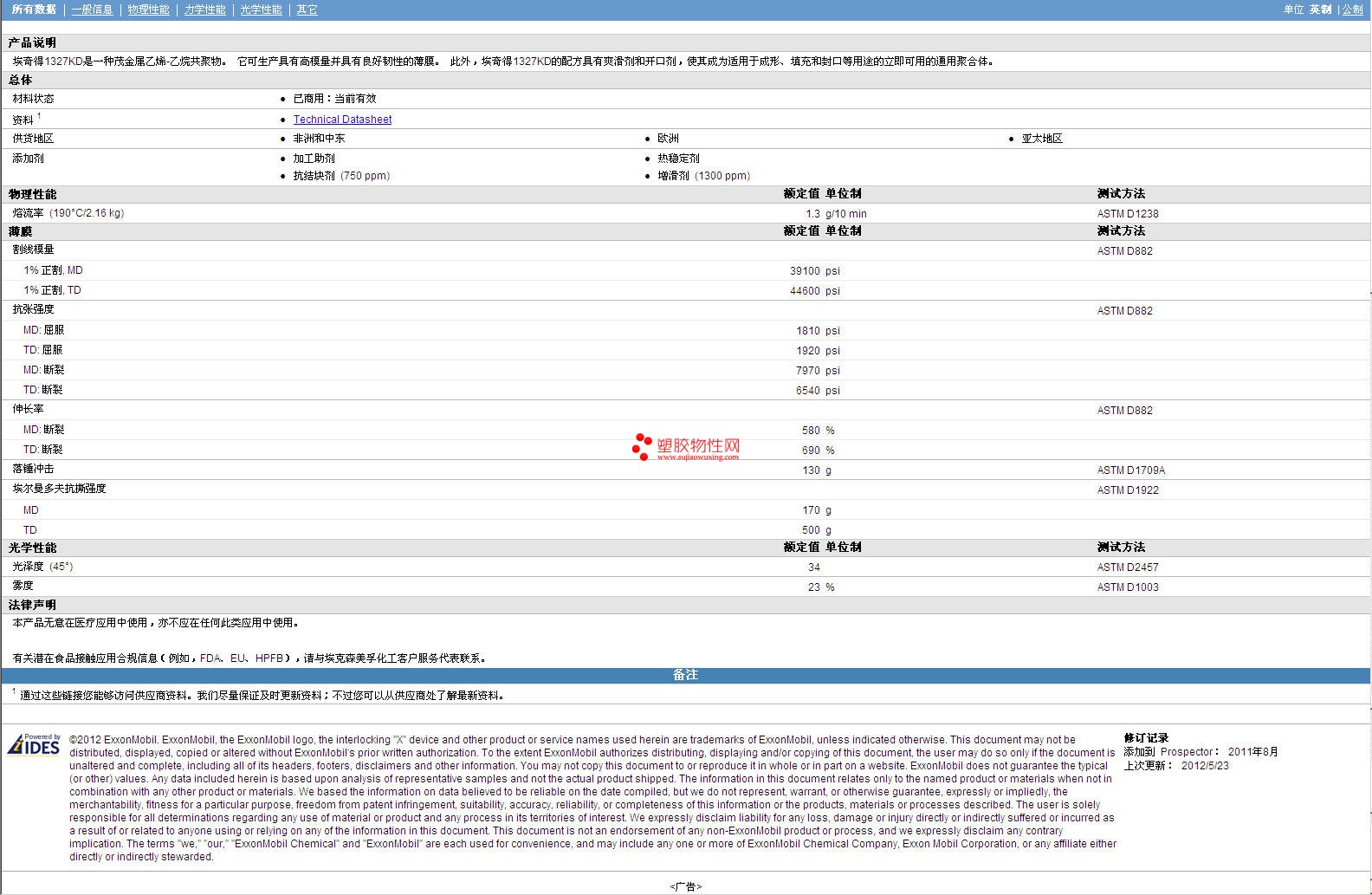 如需了解Exceed AES 1327KD 物性表更多详情,ROHS(SGS)报告、物质安全资料表(MSDS)、材质证明、UL黄卡等,最新行情报价等可来电咨询:赵先生:13424755533或QQ: 27660005