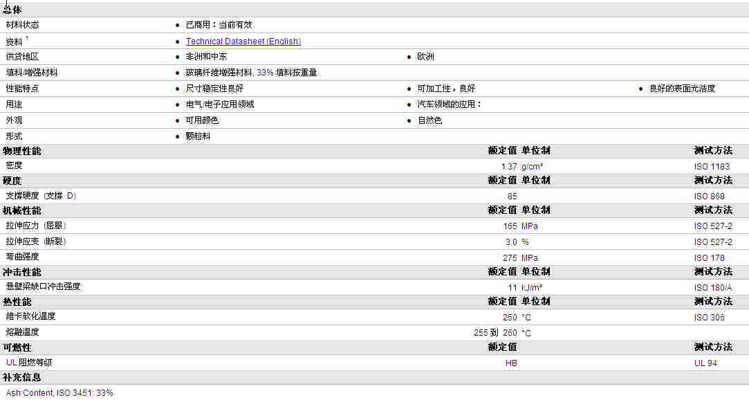 Tislamid 66 PA 66 GFR 33物性表资料详细内容如图