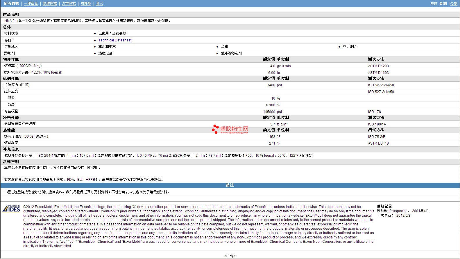 需要了解ExxonMobil AES HDPE HMA 014 更多详情,赵先生:13424755533或QQ: 27660005