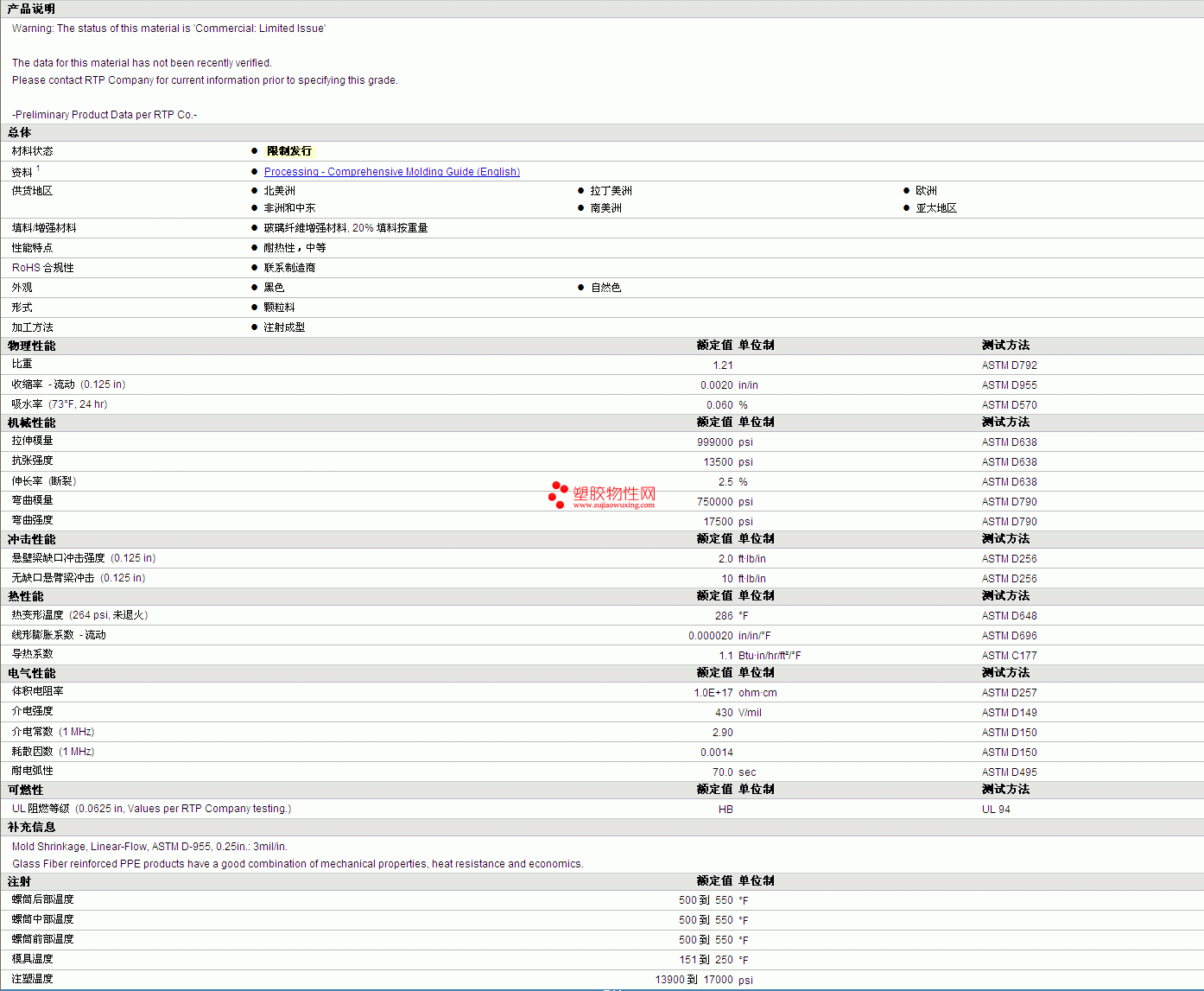 | 弯曲强度 | 17500 | psi | ASTM D790 |