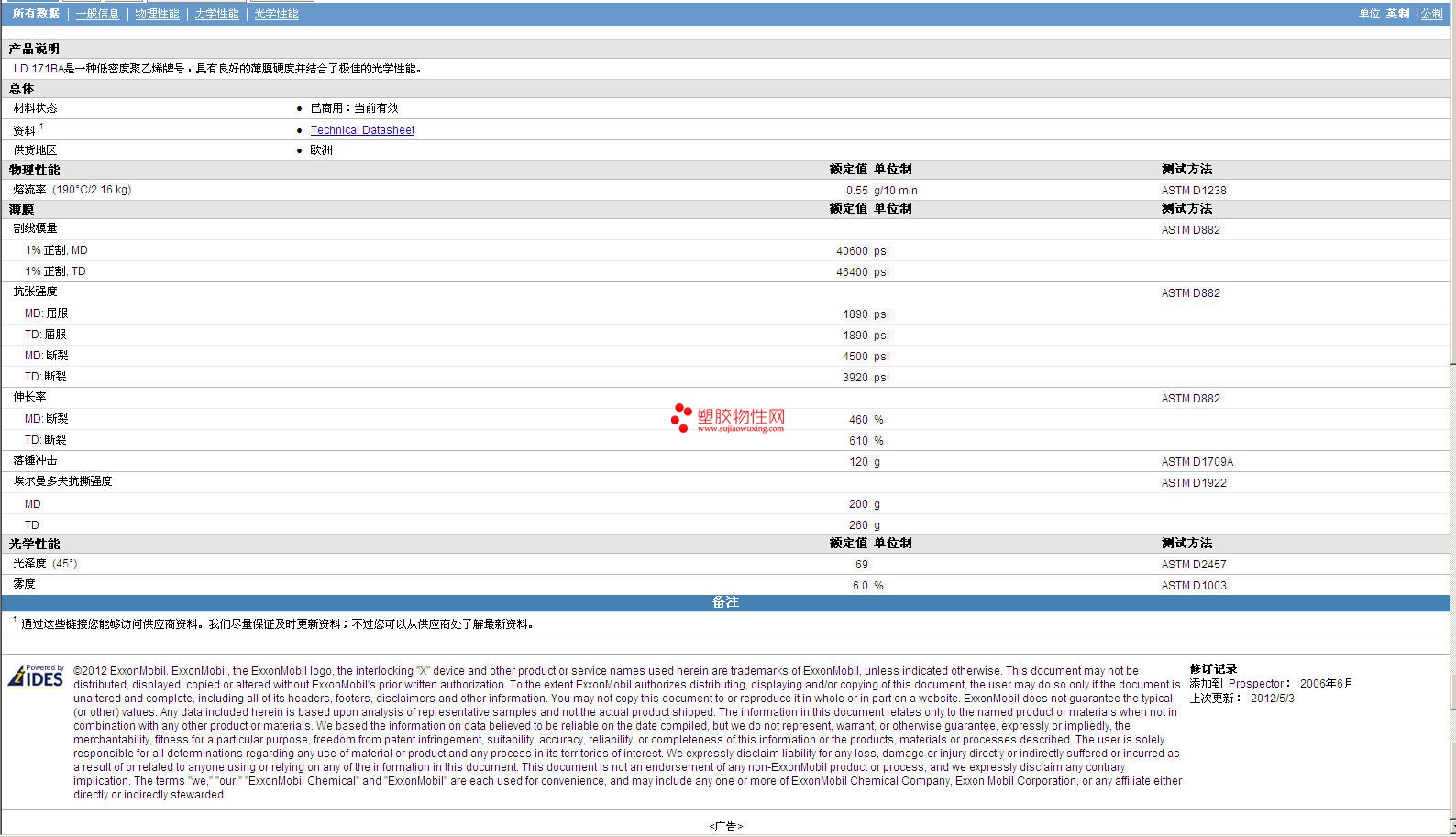 ExxonMobil AES LDPE LD 171BA详情见附件
