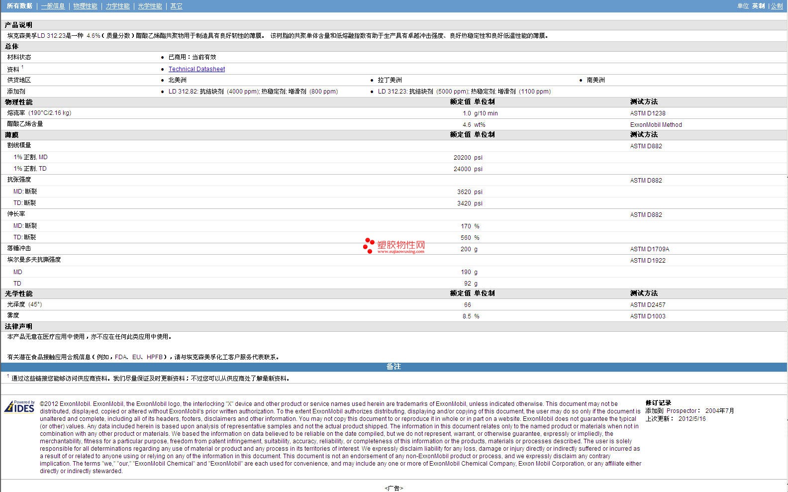 ExxonMobil AES LDPE LD 312 Series详细情况如图