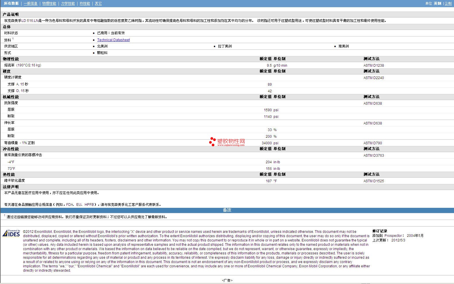 ExxonMobil AES LDPE LD 516.LN 物性表