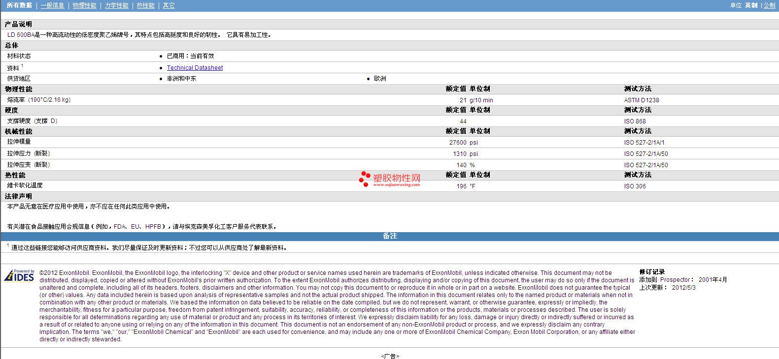 ExxonMobil AES LDPE LD 600BA详情见附件