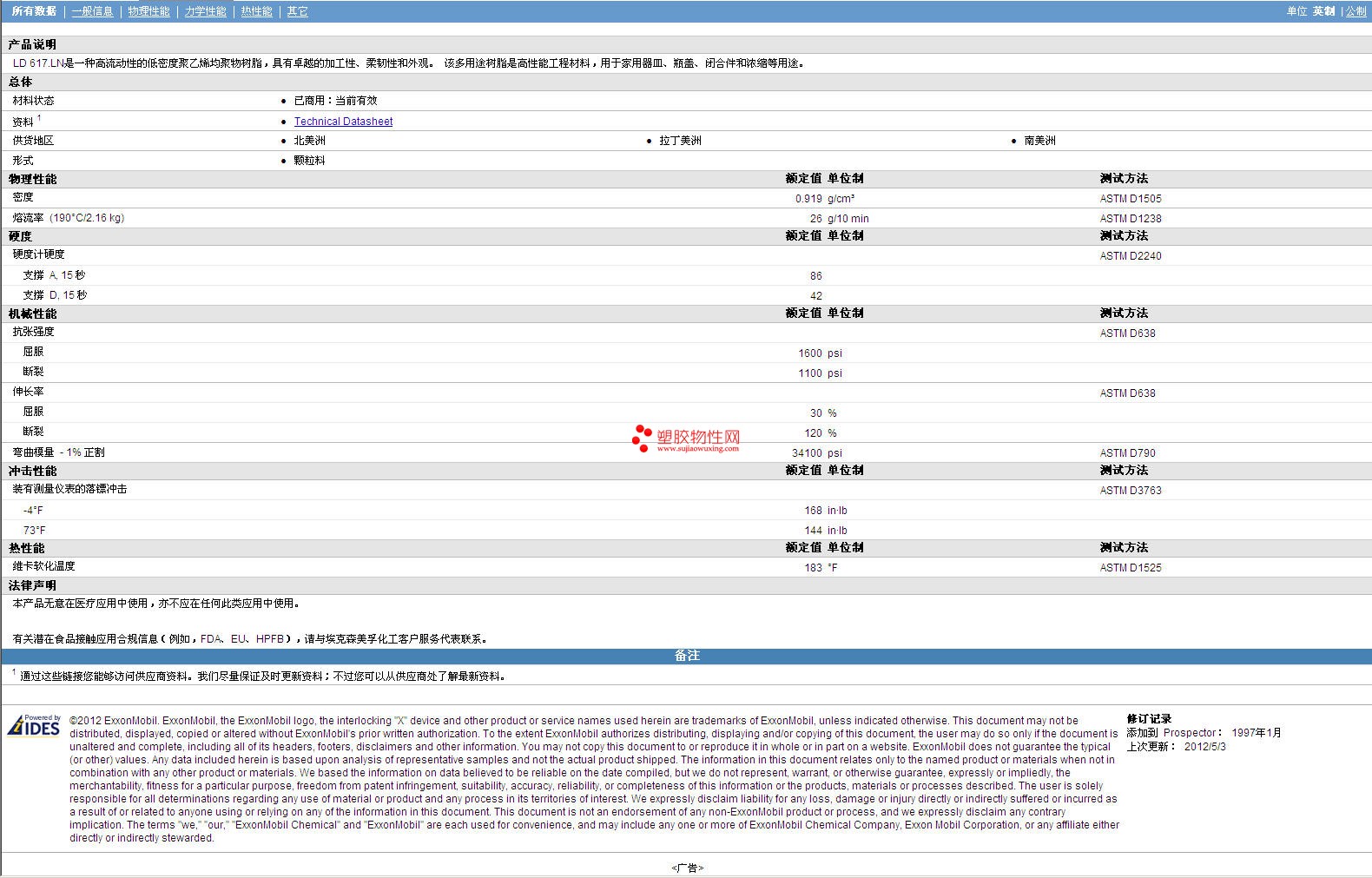 ExxonMobil AES LDPE LD 617.LN 物性表