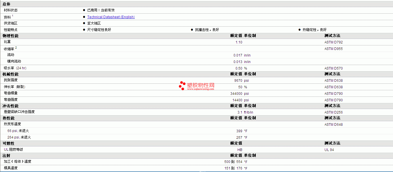 | 机械性能 | 额定值 | 单位制 | 测试方法 |