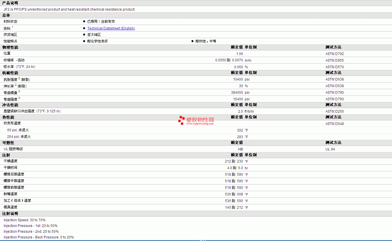 | 机械性能 | 额定值 | 单位制 | 测试方法 |