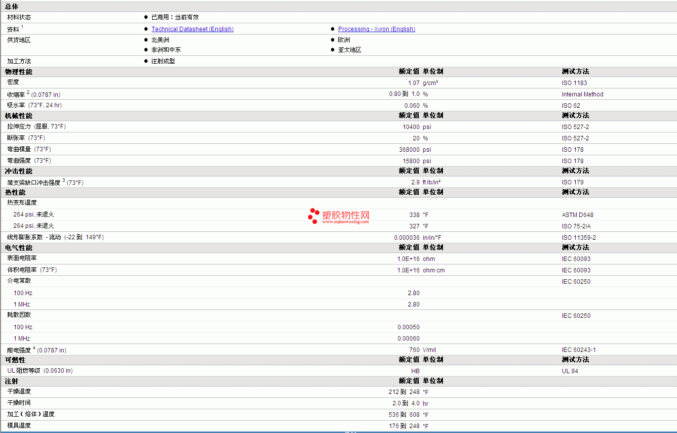 | 弯曲模量 (73°F) | 368000 | psi | ISO 178 |