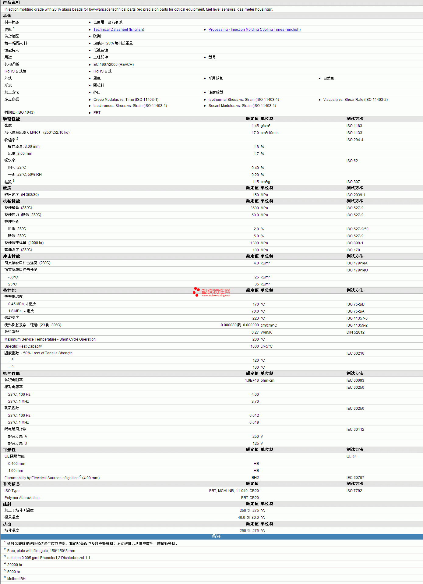 Ultradur PBT B 4300 K4物性表 见图片