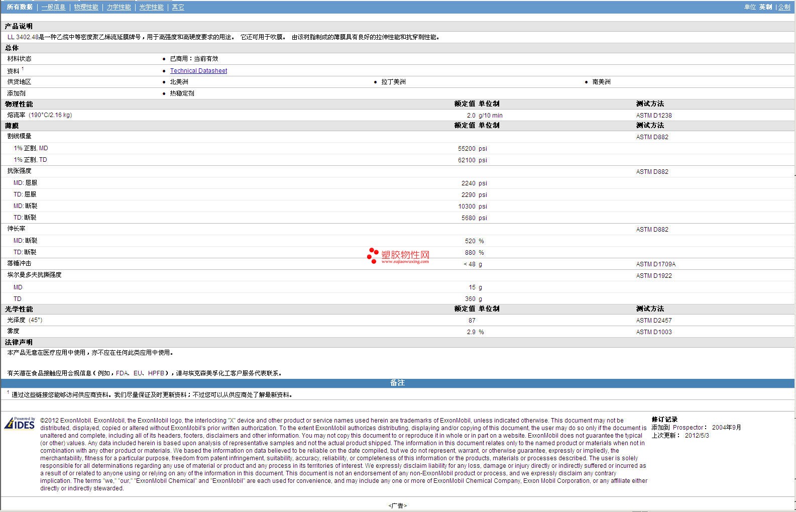 | 熔流率 (190°C/2.16 kg) | 2.0 | g/10 min | ASTM D1238 |