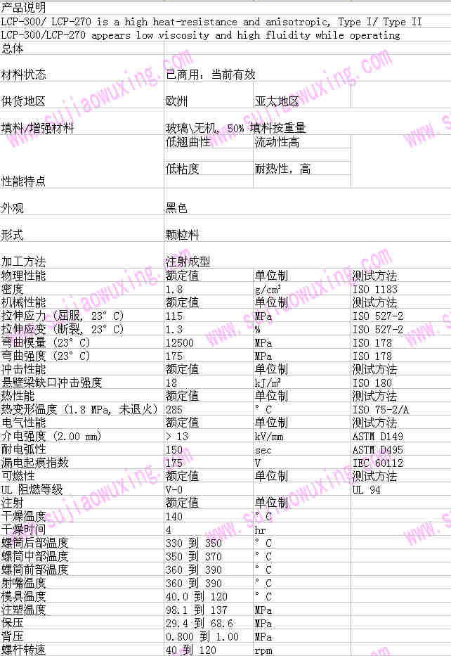 LONGLITE LCP LCP-300 B5TL物性表资料表