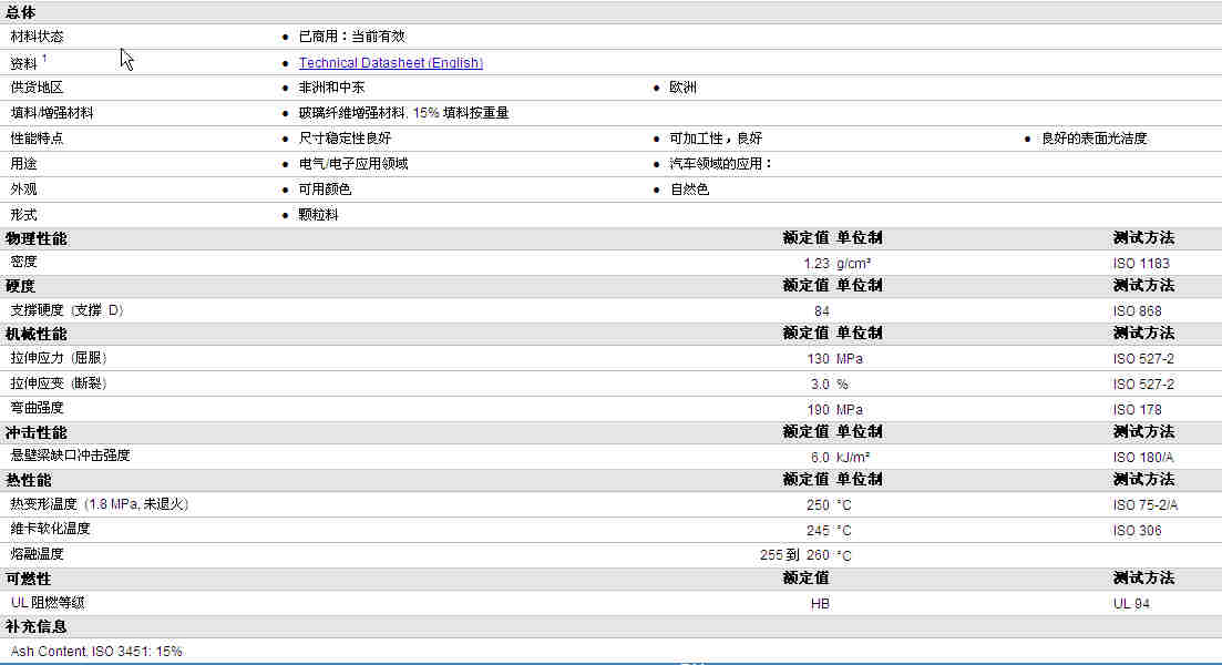 Tislamid 66 PA 66 GFR 15物性表资料详细内容如图