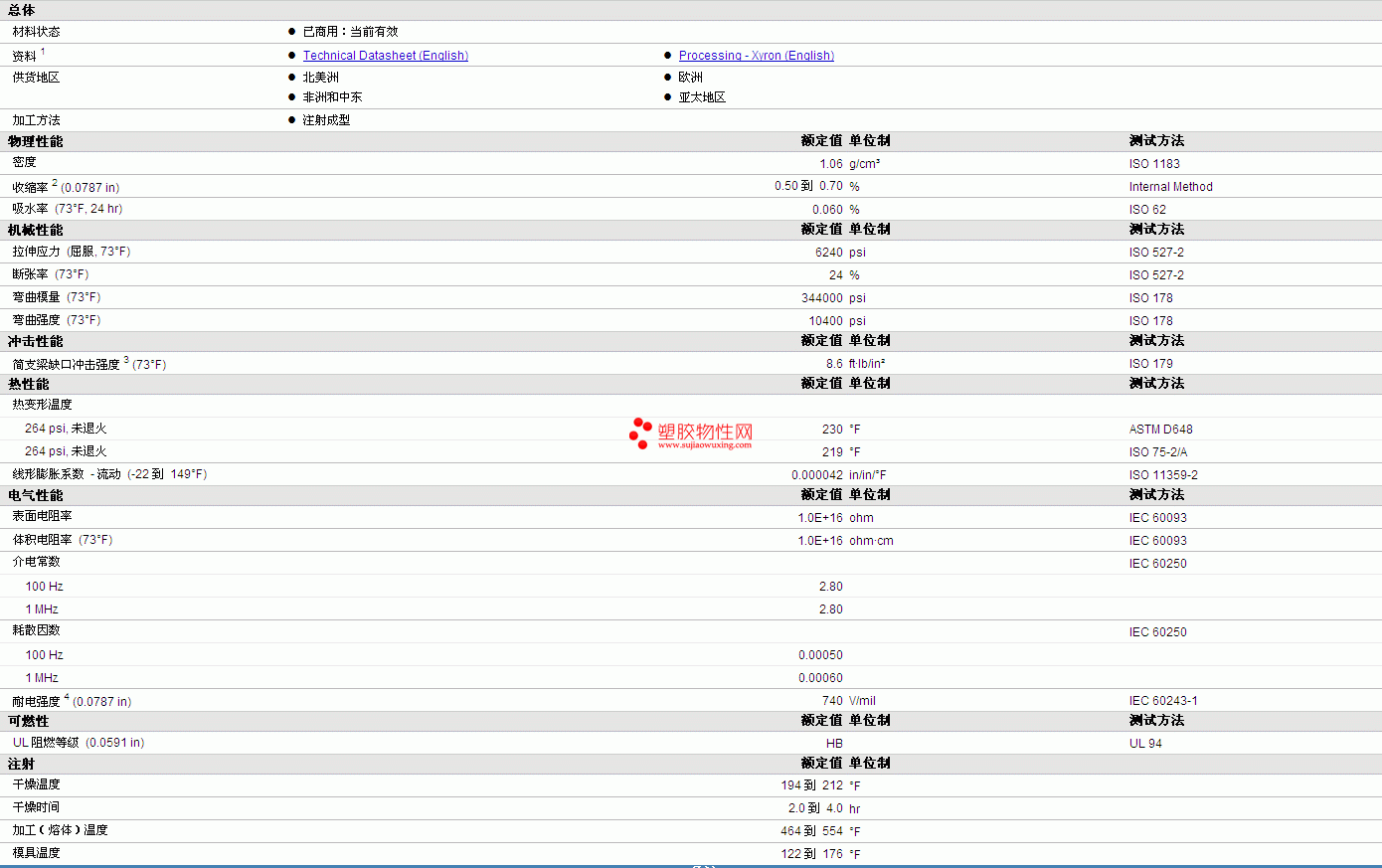 | 弯曲模量 (73°F) | 344000 | psi | ISO 178 |