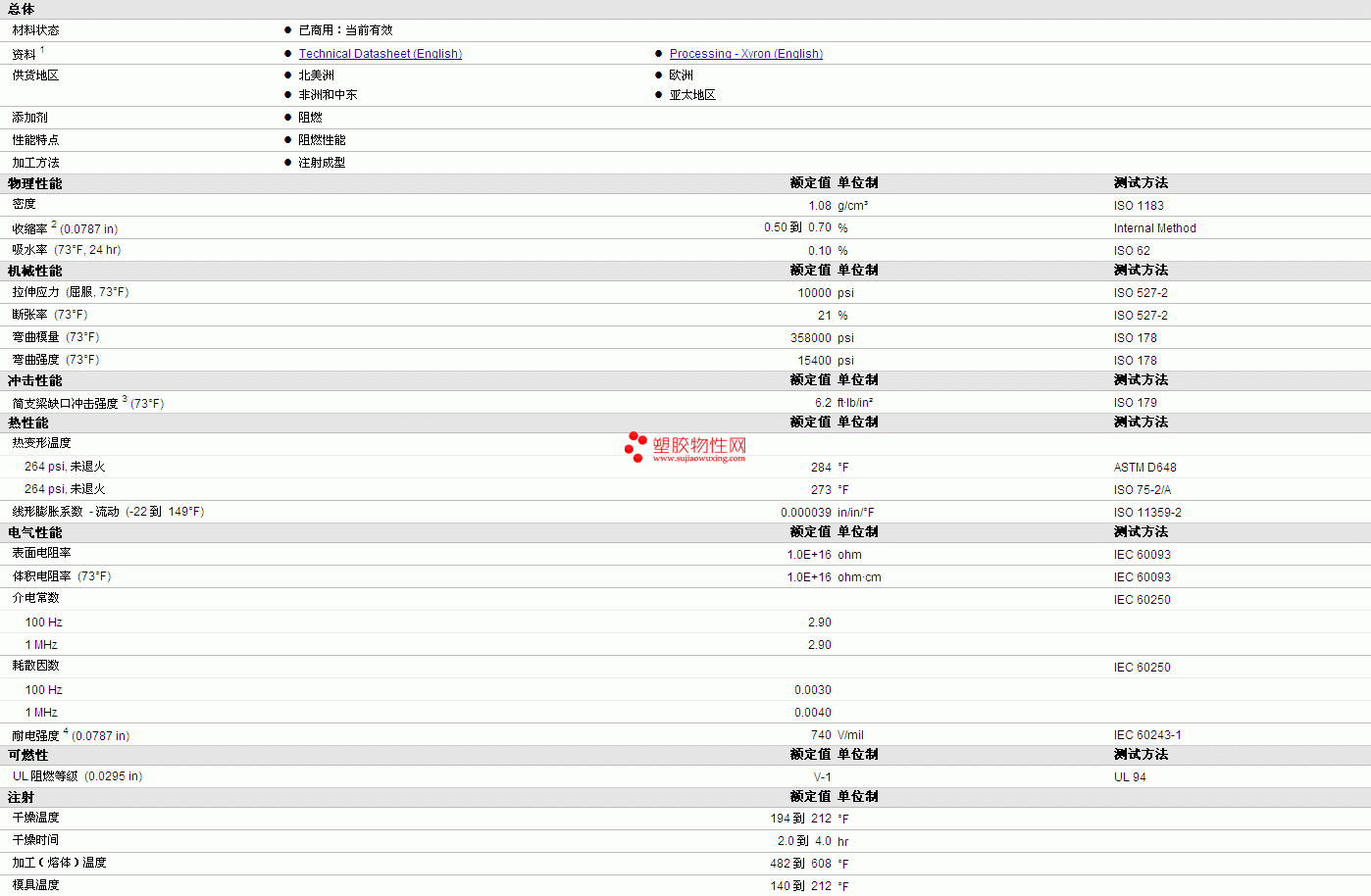 | 机械性能 | 额定值 | 单位制 | 测试方法 |