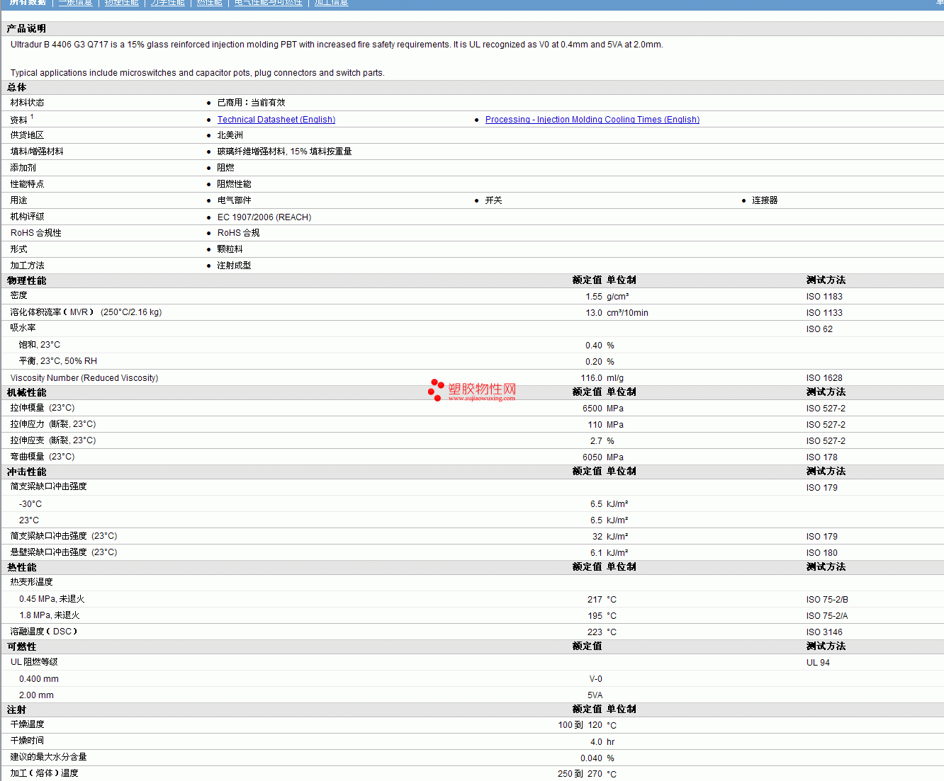 Ultradur PBT B 4406 G3 Q717物性表 见图片