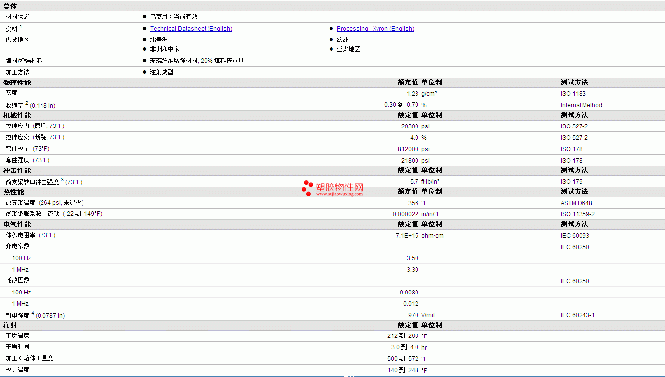 | 弯曲模量 (73°F) | 812000 | psi | ISO 178 |