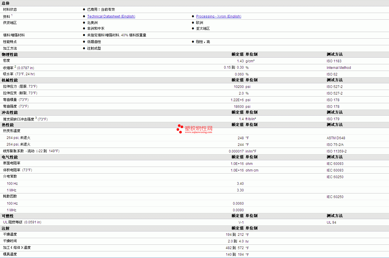 | 拉伸应力 (屈服, 73°F) | 10200 | psi | ISO 527-2 |