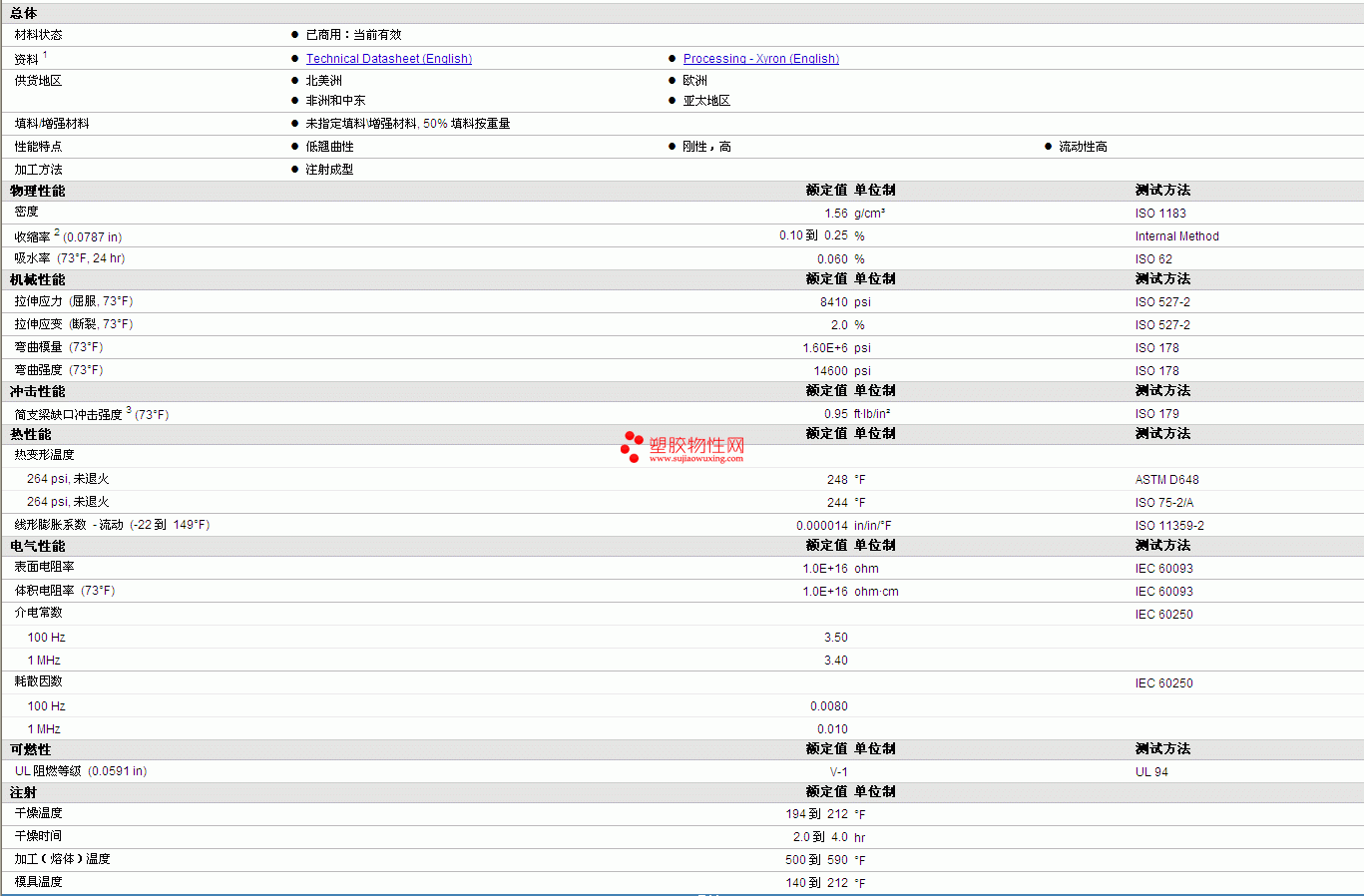 | 机械性能 | 额定值 | 单位制 | 测试方法 |